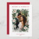 Red Romantic Christmas Botanical Frame Holiday Cards with Photo and Red Background for First Christmas Married.