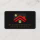An all black cover features a creative red rooftop and gold star that is illuminated by a gold window. Towards the base of the card lies the business name and its contact details.