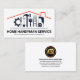 An all white cover is accentuated by a red roof that has handyman construction tools underneath. ; They represent some of the work that you might offer e.g. the sprocket wheel and screwdriver for mechanical repairs, the spade for gardening, the hammer for home repairs etc. Each tool's work interpretation is left to your own explanation. Near the base lies the business name alongside a slogan caption option. You can change the caption remarks to the slogan to suit your own needs.