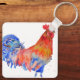 Red Rooster Chicken Blue Watercolor Wedding Key Ring