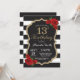 Red Rose 13th Birthday Invitation Gold Glitter
