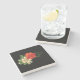 Red Rose and Daisies Black Background Stone Coaster