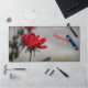 The beautiful photographic image of a bright red Rose blossom against a grey background is an elegant and striking desk mat that you can personalise with a Name or your own text.