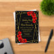 Gold and black birthday invitation with vibrant traditional red roses and classic script typography