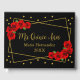 Gold and black Quinceañera with vibrant traditional red roses and classic script typography