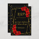 Gold and black Quinceañera with vibrant traditional red roses and classic script typography