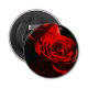 Close up photograph of a vibrant red rose on home decor and furnishings.