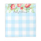 Red Rose Floral Blue Buffalo Plaid Script Monogram Notepad