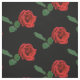 This elegant floral fabric design features a repeating pattern of single red rose flowers with green leaves set on a pure black background. The perfect idea for gardeners!