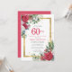 Beautiful red and white roses are nestled in holly and eucalyptus leaves to create an elegant floral display. They decorate a wide gold frame and are dappled with gold confetti dust. 60th birthday celebration and the person's name is written in a large red text. All of the text can be edited. Perfect choice for a special winter birthday celebration.