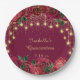 Red Rose Gold Star String Light Stars Quinceañera Paper Plate