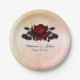 Red Rose Gothic Wedding Names and Date Peach Paper Plate