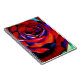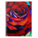 The perfect notebook for inspirational ideas with original design of red English rose macro flower from original watercolour artwork painting by Sacha Grossel Art. Large close up of crimson flower with blue highlights inspired by love and passion.