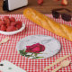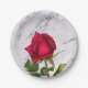 Red Rose Marble Modern Glam Bridal Shower Party Paper Plate