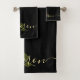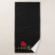 Red Rose On Black And Gold Monogramed Bath Towel Set
