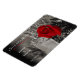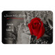 A gorgeous, elegant Save the Date reminder featuring a single red rose against a soft monochromatic black and white background that fades to black on the right side. A red swoosh underline highlights the Save the Date text which is customisable, the couple's names are customisable, and the event date is customisable. Perfect for your potential guests to keep on their fridge or metal cabinet. This design is born from my own original enhanced photography and this theme is also available as invitations.