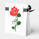 Bring a touch of elegance to your next event. A simple white bag tied up with a black bow ribbon. The bag has a small red rose on the front corner and a larger red rose of the back of the bag. These will make the perfect addition to a beautifully set table filled with your special treat for guests.