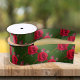 Red roses wedding and craft ribbon. Dark green ribbon comes in two widths. A pattern of red roses with rosebuds covers either grosgrain or satin fabric. Choose a desired length. The pretty design is perfect for decorating chairs for a wedding, or tying bows, gifts, and many other uses.