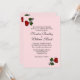 Traditional layout on ivory - hex #FCDEE1 wedding invitation with small flower accents. Put the first names of the Bride and Groom on one side giving your invitations a less formal feel. On the other side the pertinent wedding information adds a classic flare.