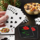 Got a poker game or an intense game of go fish planned? Grab this pretty cards to play with. A black background that makes the red and green rose really pop will make a statement at your game. Personalise it by changing up the background colour or adding text for a party favour.