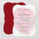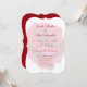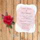 Red rose, reception only invitation for newlyweds who have a private ceremony. A big red rose is the background for text. Names of the couple are at the top in script. A short few lines explain when and where they were married. "Please join the Newlyweds" is also in script, then a paragraph for reception information. A response line can also be used, or use one of our RSVP enclosure cards. Reverse is solid red, and all text is dark red. Bracket shape is one edge choice, and can be changed. This design is also available as an instant download.
