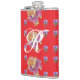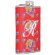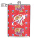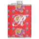 Red Rose Shabby Chic Rose Pattern Floral Initial Hip Flask