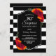 Red Rose Striped Surprise 80th Birthday Invitation