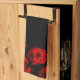 Red Rose Trim on Black Hand or Kitchen Towel
