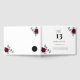 The red rose wedding table number guestbook from Twin Spirit Designs is an ideal addition to any wedding ceremony. The design has a grey backdrop, green foliage, and red flowers.