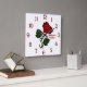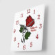 Red Rose with Name Red Numbers Square Wall Clock