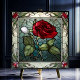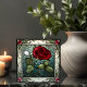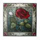 Red Rose with Vine Border 2 Stained-Glass Look Ceramic Tile