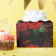 Wrapping paper shown with a black background colour and a pretty red roses floral print.