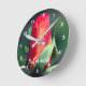 Red Rosebud Flower Yellow Highlights Personalized Round Clock