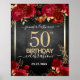 Elegant Faux gold confetti highlights on the top and bottom border. Bright deep red roses with gold floral accents. All text is adjustable and easy to change for your own party needs. Great elegant 50th birthday template design.