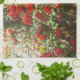 Red Roses Against a Stone Wall Tea Towel