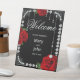 Welcomes guests to your event as soon as they arrive. Wedding signs are an important part of your wedding ceremony or wedding reception decor. The wedding welcome sign does a few key things at once. First, it lets everybody know how happy (and thankful) you are that they're there. Second, it directs them towards wherever the festivities are taking place. Third, it will help drive home your celebration's theme or style. You can change font style, size, and colour, as well as background colour.