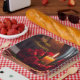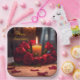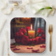 These Anniversary paper plates feature a romantic scene with red roses and a candle.