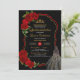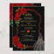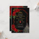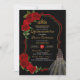 Red Roses Black and Gold Elegant Dress Quinceanera Invitation