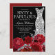 Red Roses Diamond Gown Black 60th Birthday Party Invitation