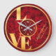 Red Roses Elegant Love Typography Couple Valentine Large Clock