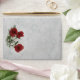 Silver flowers in Crocheting effect and red roses make precious and elegant envelope for wedding invitation/announcement card.