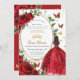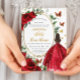Red Roses Floral Dress Quinceañera Dama Request Invitation
