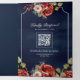 Red Roses Floral Frame Navy Blue QR Code Wedding Tri-Fold Invitation