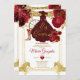 Quinceañeran Red Roses Gold Crown Glitter Invitation