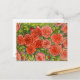 Postcard featuring delicate floral art, blooming rose flowers in a garden in red and chartreuse green. Ink and soft pastels sketch, colour adjustments. © Clipso-Callipso / Julia Khoroshikh www.juliakhoroshikh.art #redroses #roseflowers #floralart #floralsketch #florals #botanical #floralprint