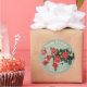 Birthday sticker featuring a bouquet of fresh red roses and two curved texts: