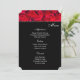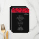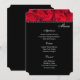 Menu Card made to coordinate with Red Roses Wedding Invitation is of 110 lb. weight paper shown in Black with Photo of Red Roses and a delicate pin dot border trim. Script and standard text in White.