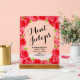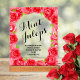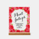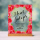 Clear acrylic bridal shower tabletop sign features a border of red roses and the words and the words "MINT JULEPS" and their ingredients. More signs and MATCHING items in our collection.