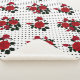 Red roses on a white background with black polka dots.