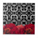 Elegant floral decorative tile design featuring red roses on a black and white geometric pattern.
